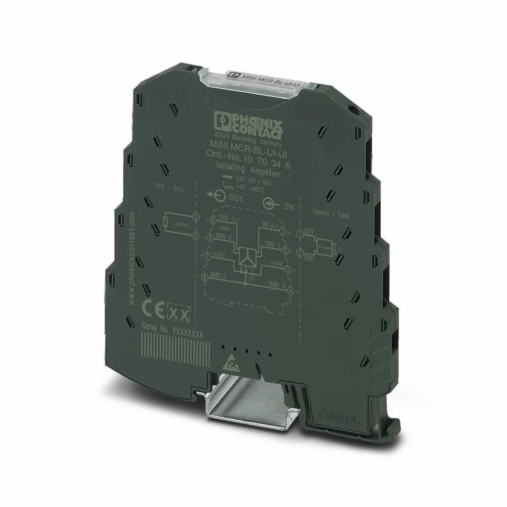 3-way isolating amplifier for the electrical isolation of analog signals, I/O can be configured via DIP switches, with screw connection, standard configuration.